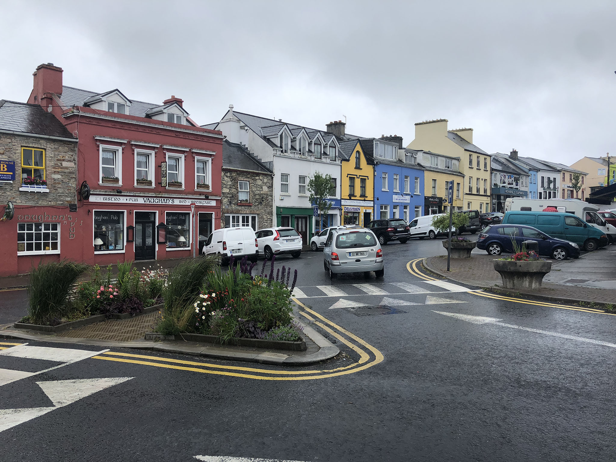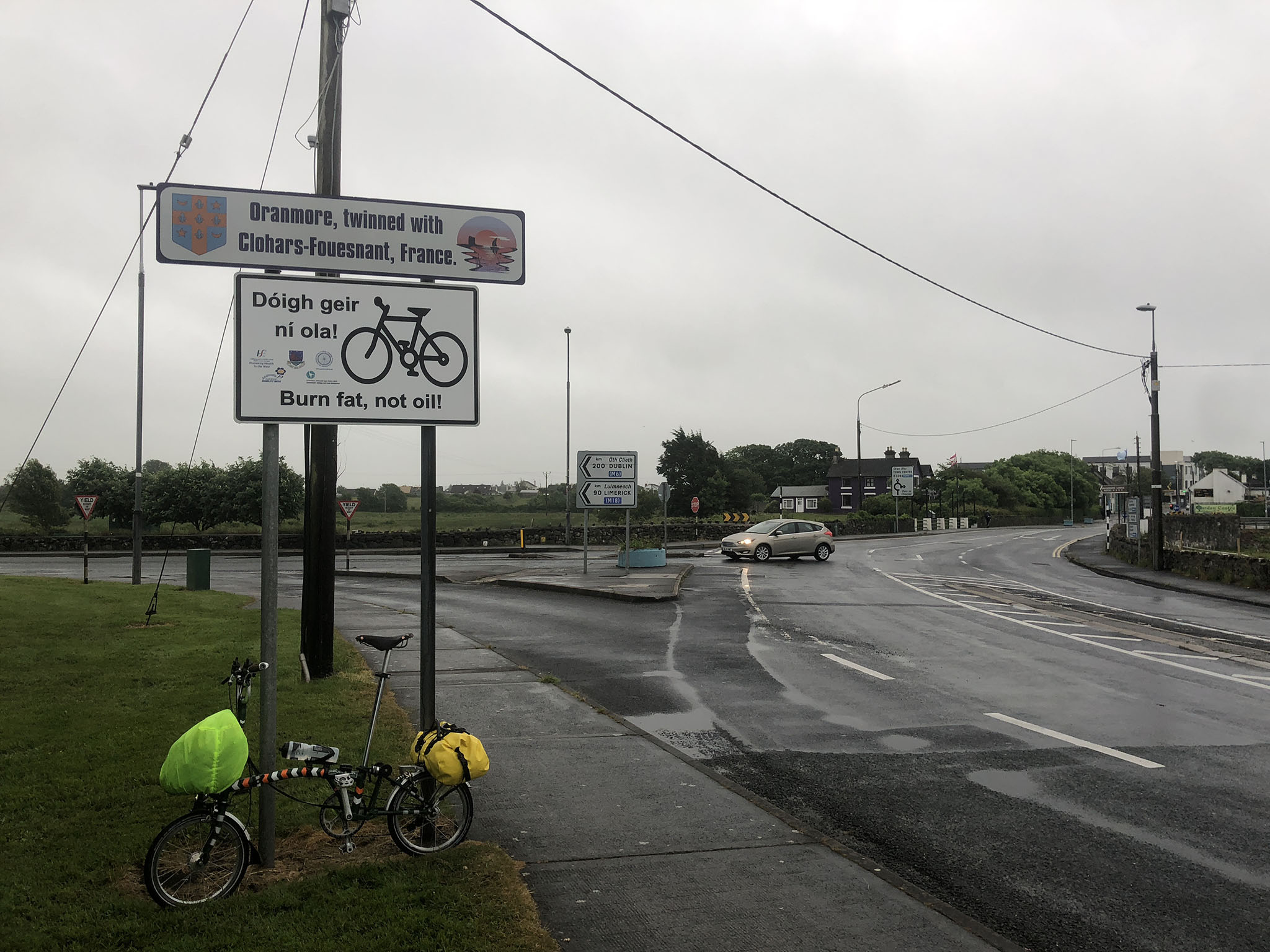 I reached Galway but passed through the centre without stopping. After the main town I stopped in at a Spar which was serving hot fresh food and had seats where I could drip (I was soaked through), eat and keep my eye on the bike.