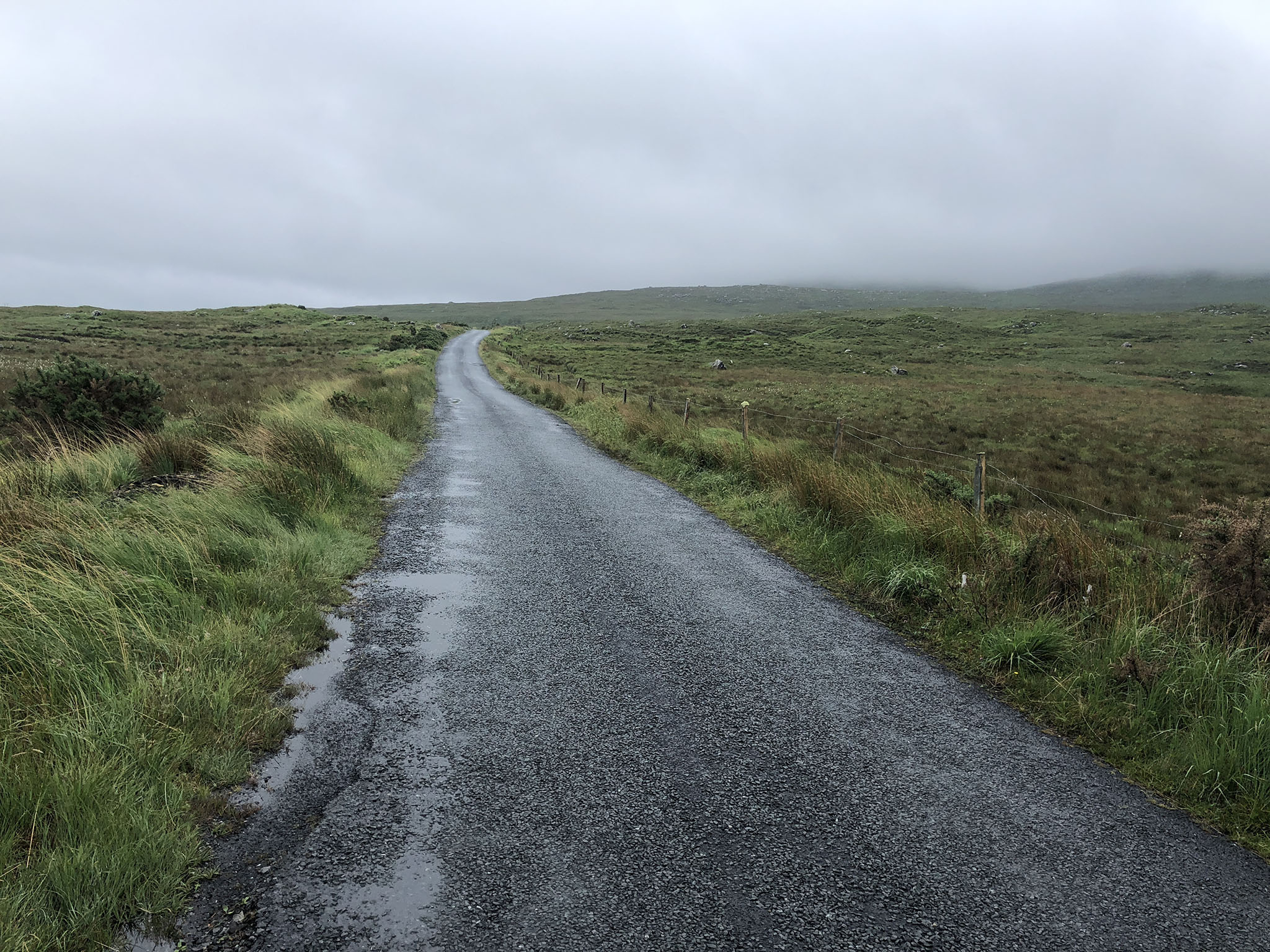 The first 30 km were spent cycling out in the exposed windswept Galway landscape, made harsh by the fact that Storm Hector is approaching. There is no shelter, houses or even any sheep for many miles. I’ll have more of this tomorrow too. After a couple of hours cycling I came across a fairly large and new visitor centre. I have no idea what it was for (!) but it gave me a chance to get a hot drink and food and warm up a bit. I put on my arm warmers, leg warmers and insulated gilet and went out again into the rain and wind.