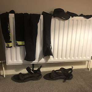 The blue skies have gone, replaced by strong wind and rain. I ate all the leftover food I had in my bag for my breakfast (a couple of protein bars and an apple), put my jacket on and headed out.