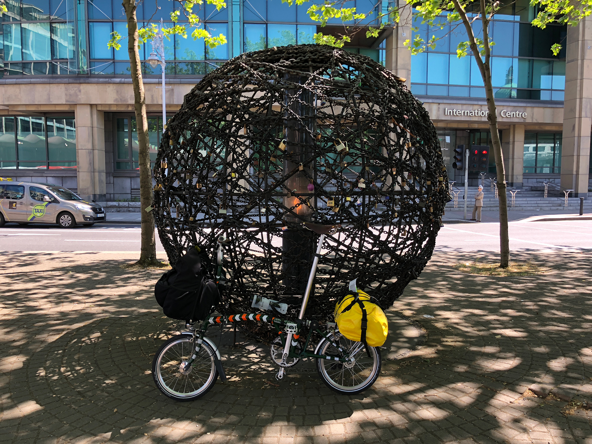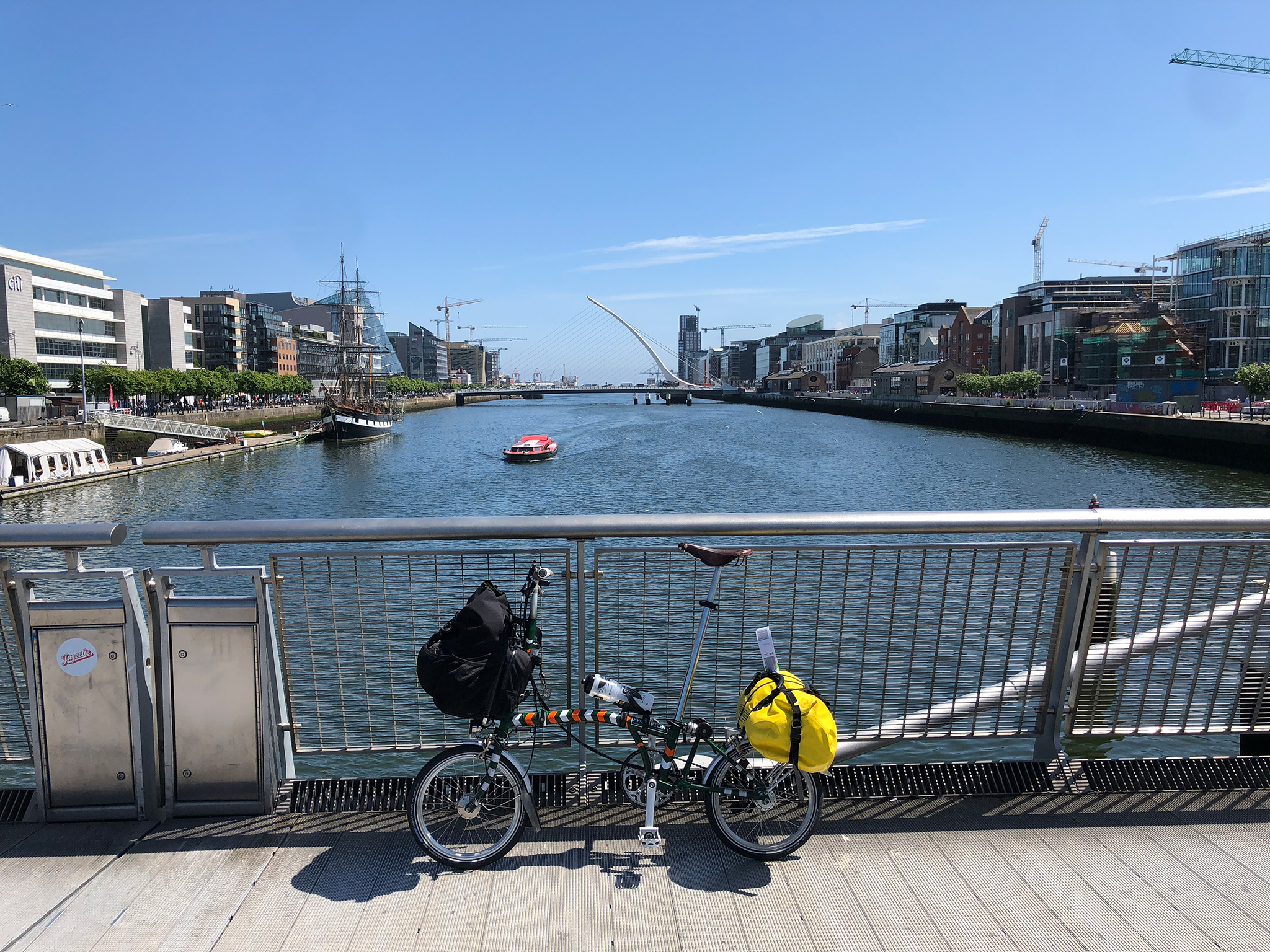 I chose to fly to Dublin from London City Airport. I used my Foldon folding bike case to carry the bike. The bike in its box counts as one extra piece of sub-23kg luggage. I left the bike box at left luggage at Dublin airport and used Google maps to guide me to my accomodation at Trinity College. There were cycle lanes pretty much all the way from the airport until arriving at the city centre, and it was a very pleasant cycle in.